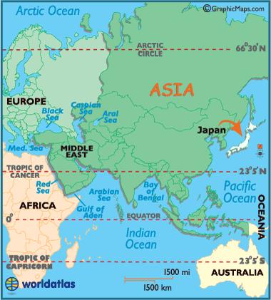 Japan in de kaart van de wereld